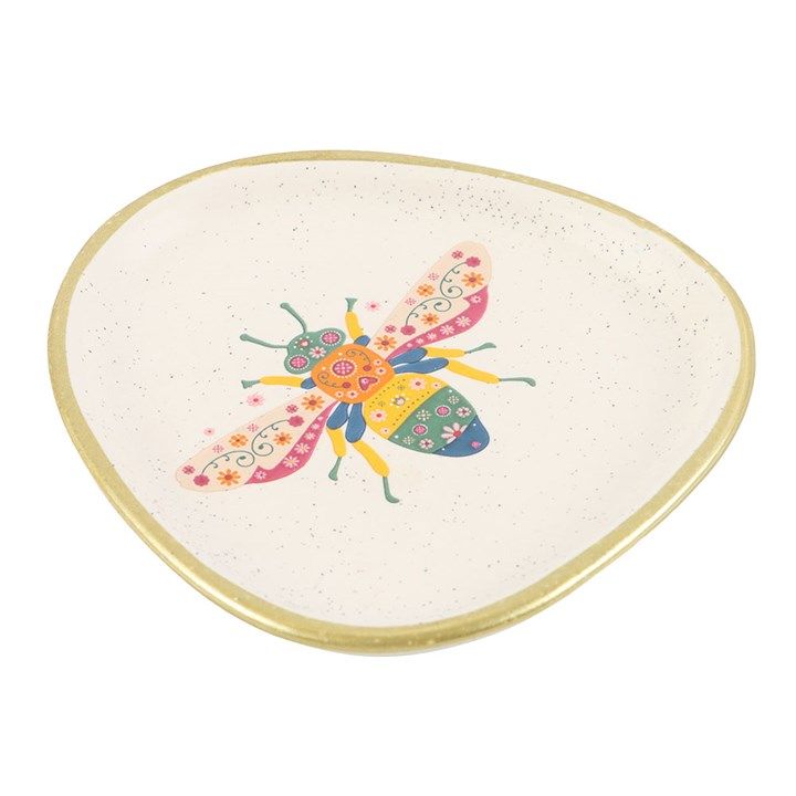 Elegant Floral Bee Ceramic Trinket Dish with Gold Edging