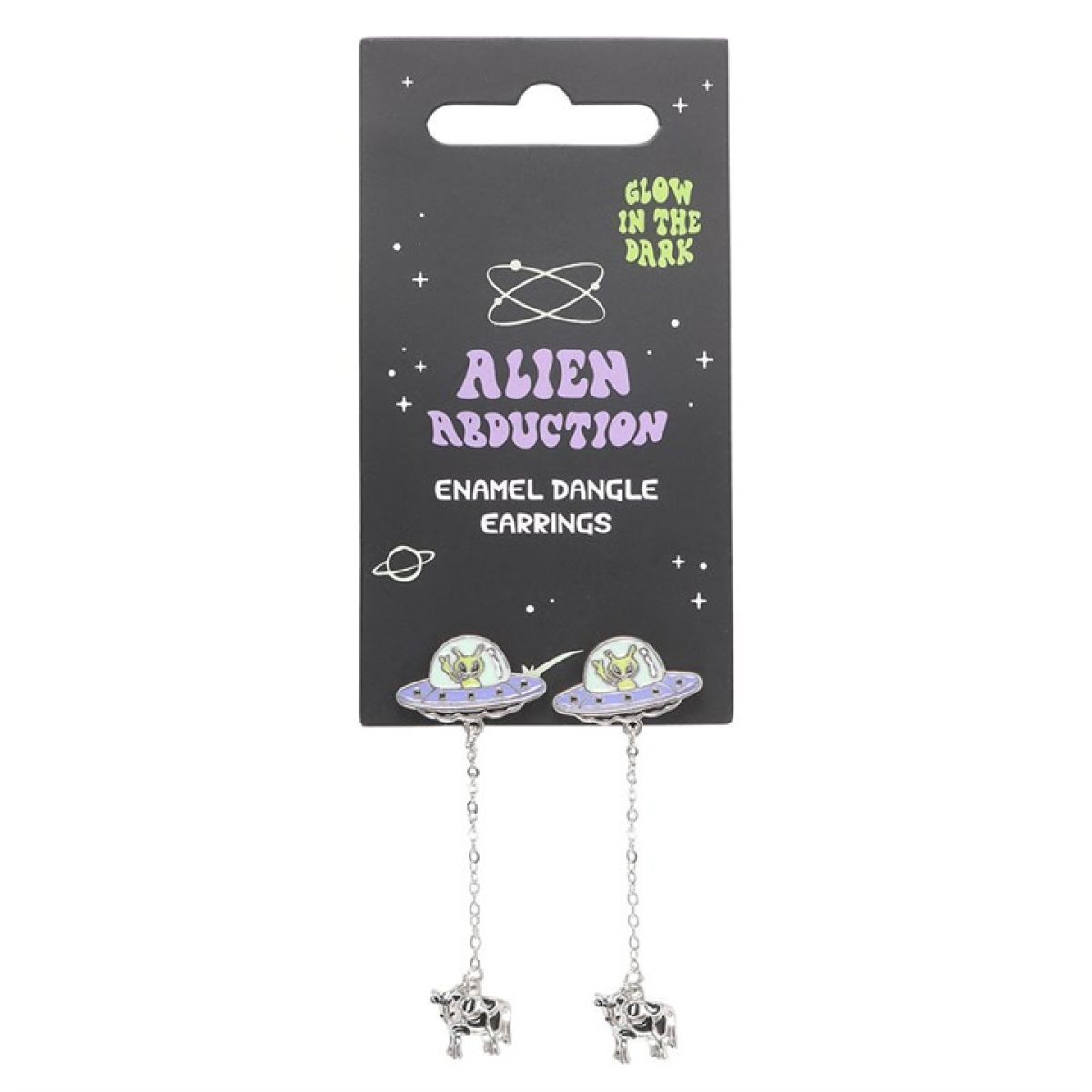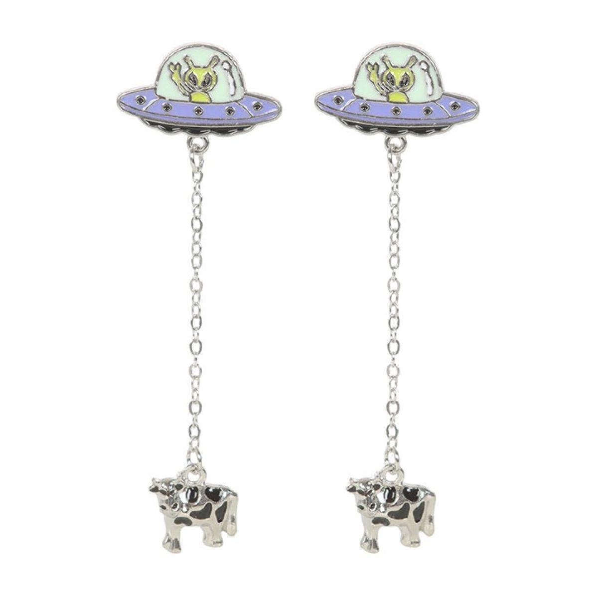 Glow-in-the-Dark Alien Abduction Dangle Earrings – Unique UFO & Cow Design